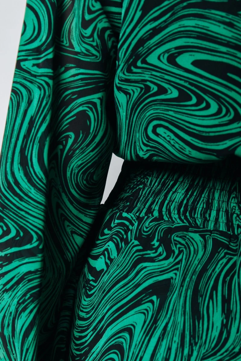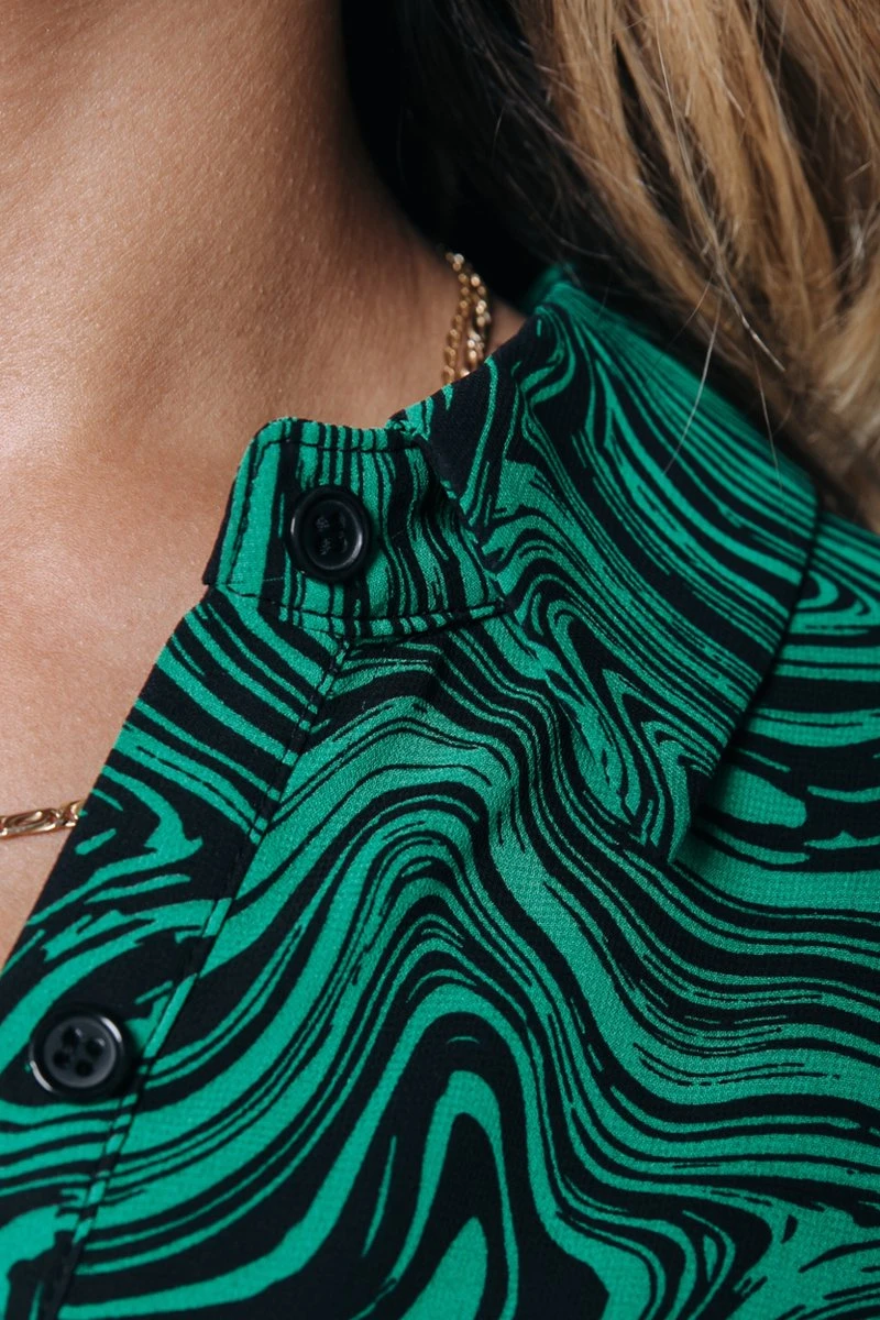 Ruffle jurkKnoopsluitingInclusief elastische smock om de taille100% polyester chiffonNon stretch stofBinnenstebuiten machinewas 30°, niet in de droger, strijken of stomen op lichte temperatuur, niet bleken, wassen met gelijke kleurenModel is 1.70m en draagt S