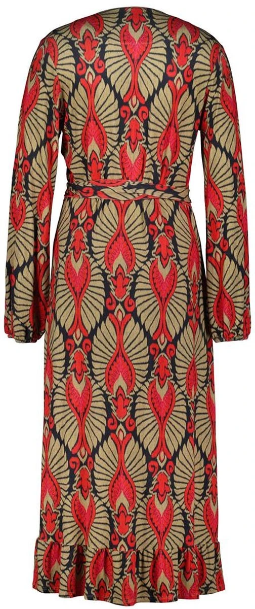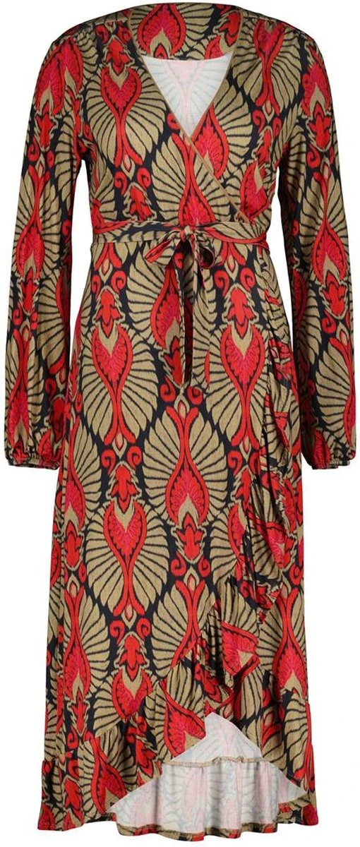 Jersey dress Jiva in Darkblue with Poppy red Inca print is een heerlijke jersey jurk met een makkelijke pasvorm door de wikkelsluiting. Jurk Jiva is aan de voorzijde afgezet met een ruche, de lange mouwen hebben een iets poffend effect. Gemaakt van Viscose.