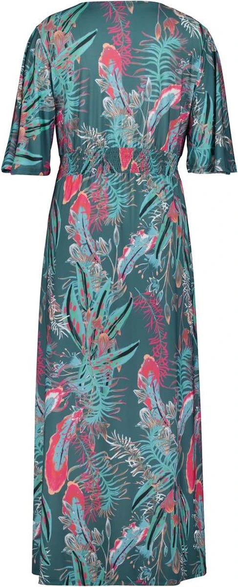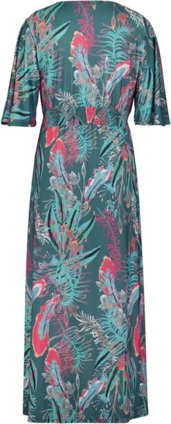 Prachtige Maxi dress van travel kwaliteit met de mooie Honolulu print. Deze is groen met allemaal firsse zomerkleurtjes. Door de travel kwaliteit kreukt deze jurk niet, ook niet als deze uit je koffer komt! De jurk heeft een wijder mouwtje en een taillekoordje voor een slank effect.