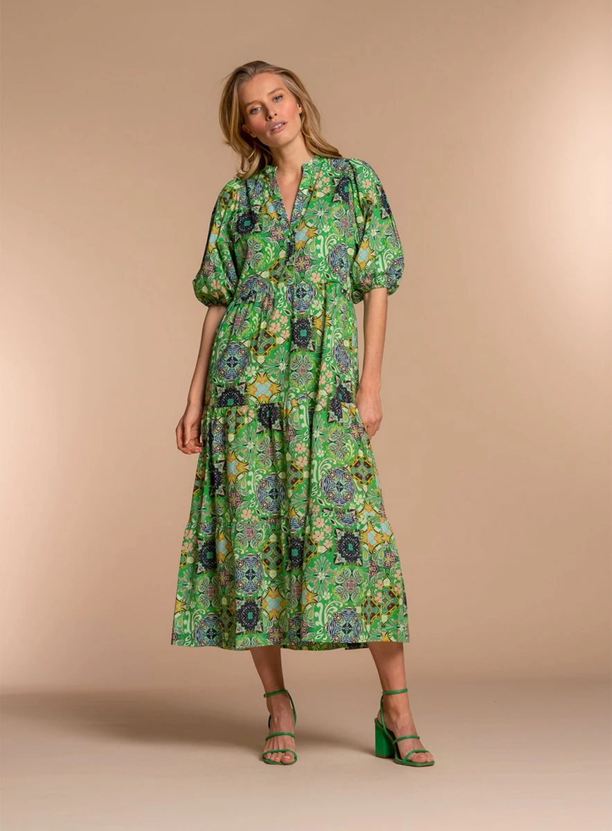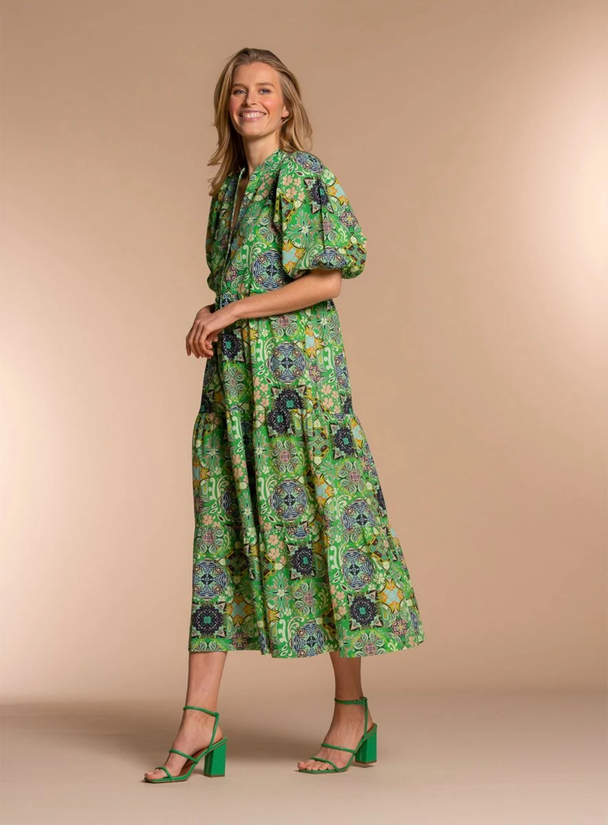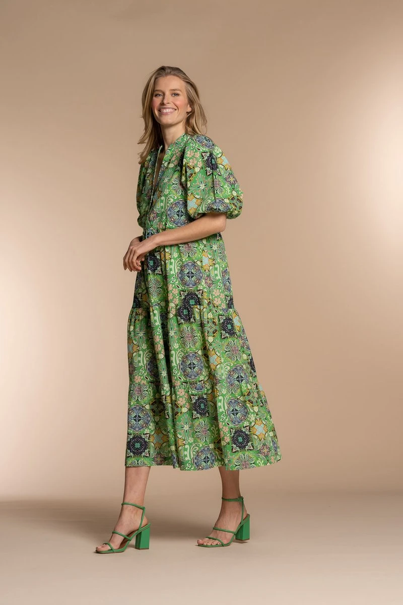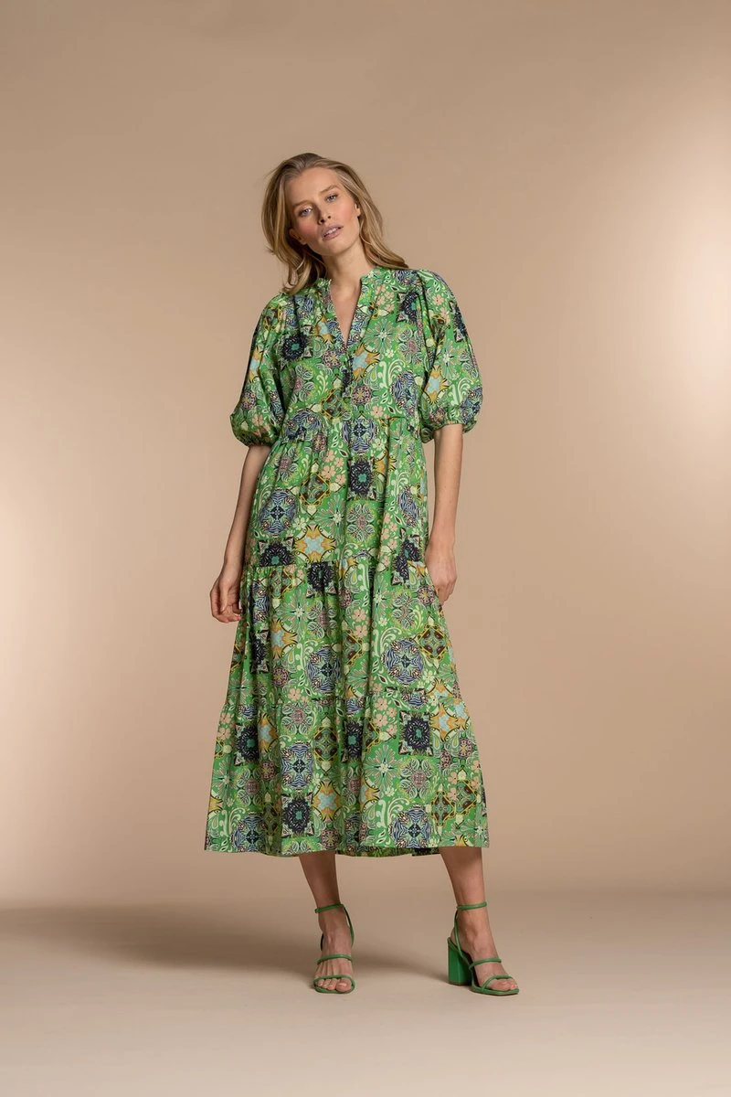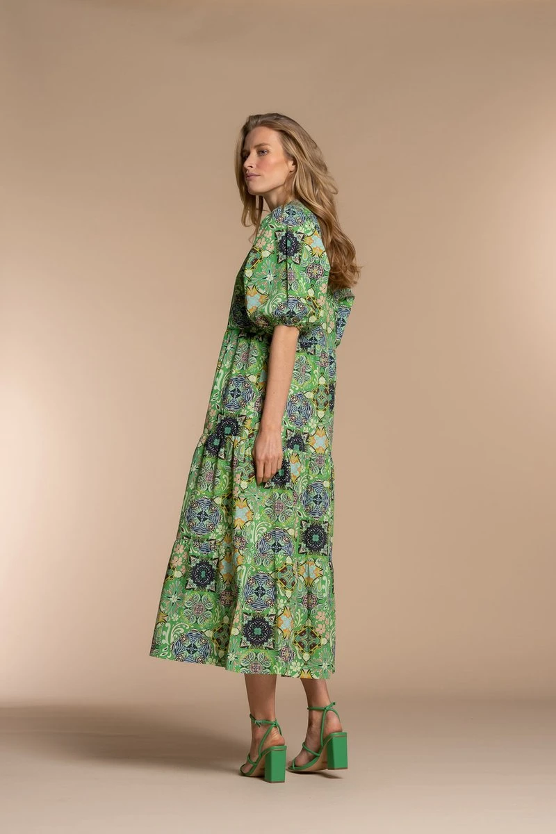 Maxi strokenjurk met een mix & match print van het merk Geisha.100% katoen