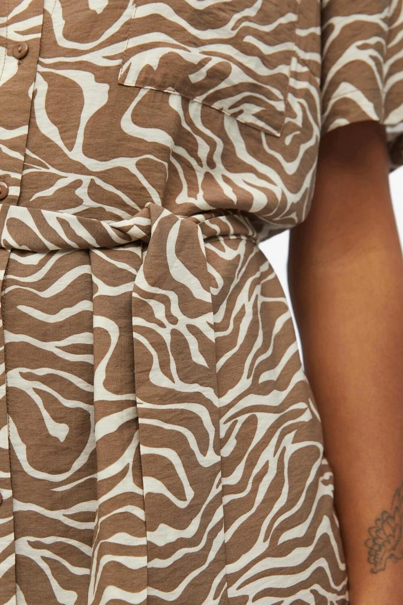 Geweven stoffen zijn duurzaam, stevig en worden meestal geassocieerd met kledingstukken zonder rekbaarheid – een geweldige stof voor kantoorkleding en leuke topjes. – Type product : Blousejurk- Hals : Overhemd kraag- Mouw lengte : Korte mouwen- Mouwen : Wijde mouwen- Sluiting : Knoopsluiting- Lengte : Knielengte- Details : Riem in de taille