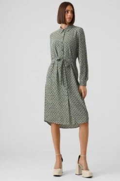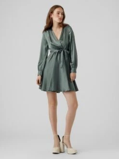 Vero Moda VMDIANA LS SATIN WRAP DRESS WVN BF Dames MINI Wikkeljurk Duck Green – Maat XXL