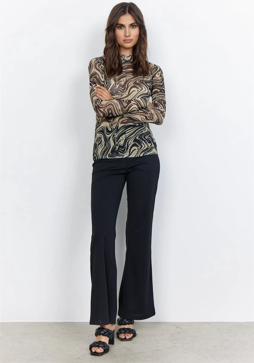Deze modieuze broek van het merk Soyaconcept is in een mix van gerecycled polyester. Ze hebben een slim fit pasvorm met wijdte bij het onderbeen en een hoge taille. Style deze broek met een sweatshirt en een paar sneakers voor een casual look.