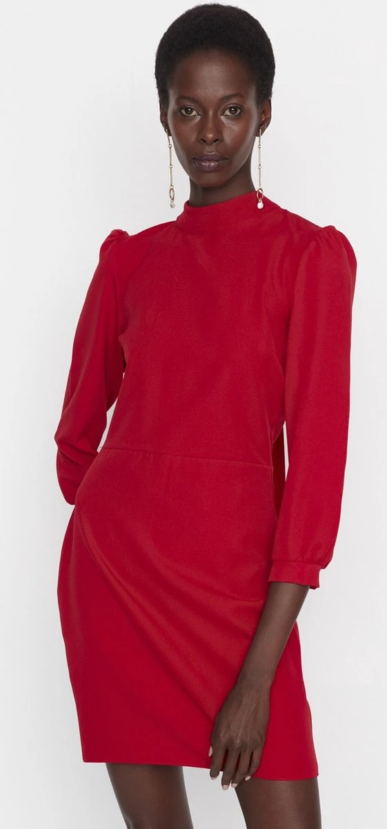 Trendyol Vrouwen Ballon Mouw Staande Kraag Bodycon Jurk