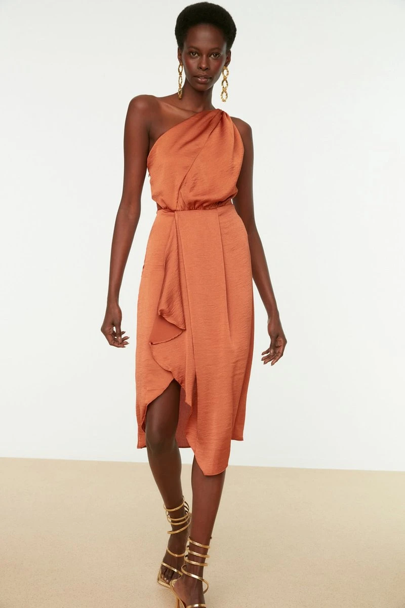 Trendyol Vrouwen Een Schouder Asymmetrische Kraag Omslag Jurk