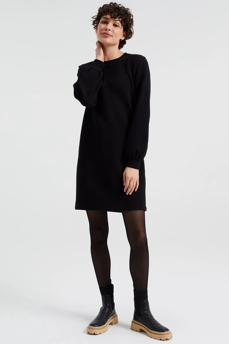 Een regular fit sweaterjurk van katoenmix met een structuur. Het model heeft een ronde hals en lange mouwen. De jurk valt boven de knie.